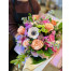 Our newest bouquet showcases the gorgeous Anemone flower. This round bouquet with assorted pastel and pink roses, double stock and seasonal flowers with fillers. We recommend this low table top bouquet to be placed in a 6"-8" bowl type vase.Available as of May 1st 2026