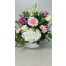 Un joli arrangement de fleurs roses et blancs dans un pot céramique 6po.